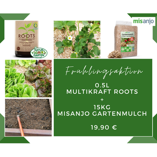 FrĂĽhlingsaktion - 0.5l Multikraft Roots + 15kg misanjo Gartenmulch